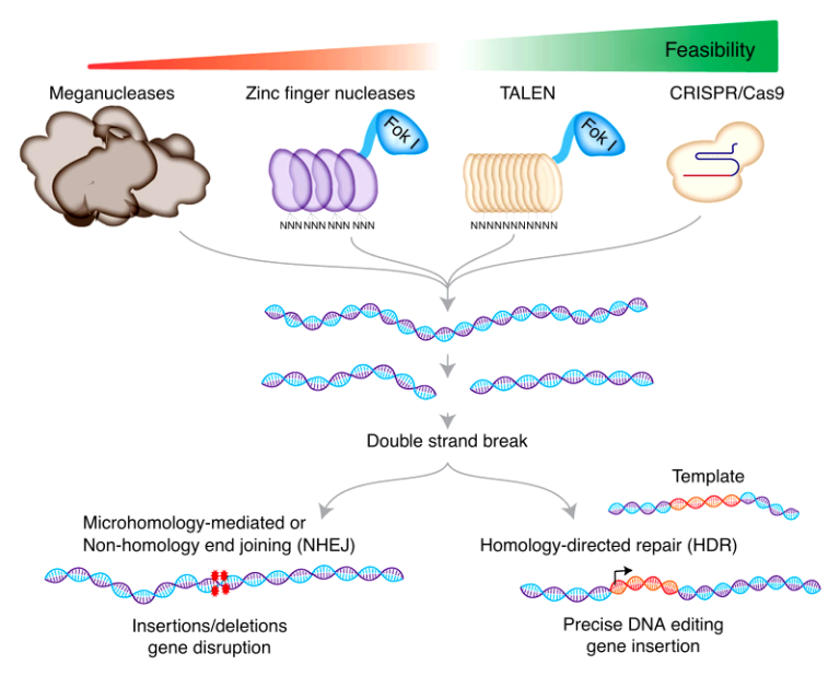 基因組編輯更快、更便宜、更高效。 基因組編輯允許研究科學家模擬 DNA 修復的自然過程。 使用最廣泛的基因組編輯工具是 CRISPR/Cas9,它是了解基因功能的有力工具。 CRISPR/Cas9 代表成簇的規則間隔的短回文重復。 除此之外,其他基因組編輯工具包括鋅指核酸酶 (ZFN)、轉錄激活因子樣效應核酸酶 (TALEN) 和大范圍核酸酶。 這些技術是基因組編輯的先進方法。