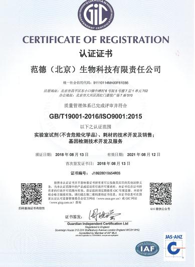 2018年8月13 通過了ISO9001認證 - 質量是范德回報客戶最好的禮物!